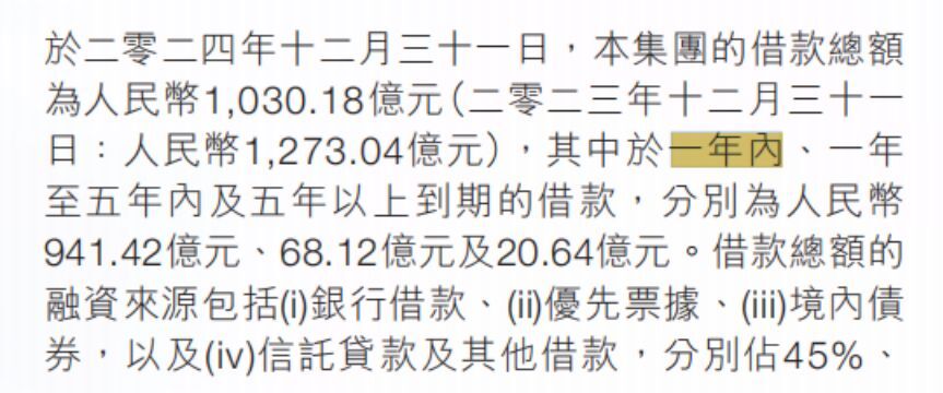 债务压力是富力地产面临的主要挑战。截至2024年末,富力地产总借款达1030.18亿元,一年内到期借款为941.42亿元,受限制现金及现金等价物合计约38.64亿元。
