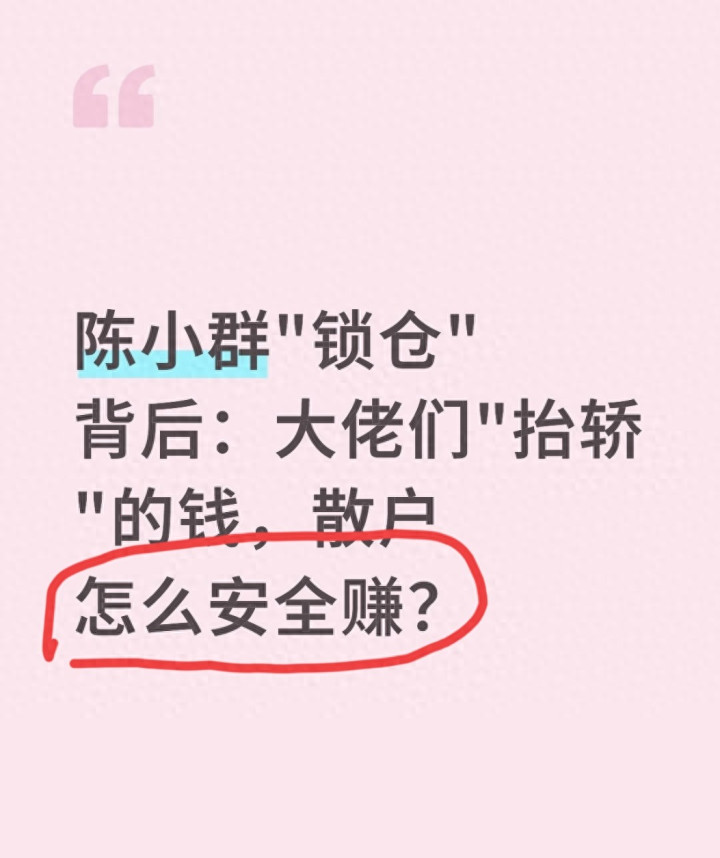 很多人对"锁仓"有误解,以为就是买了不动。但陈小群的"锁仓",是一种非常主动和灵活的策略,堪称一门艺术。